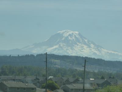 Ein Erlebnis hatten wir allerdings heute, dass wir vor allem aus Südamerika kennen: man fährt stundenlang durch flaches Gelände und kleinere Hügel und auf einmal taucht ein Riesenberg auf: Mount Rainier.