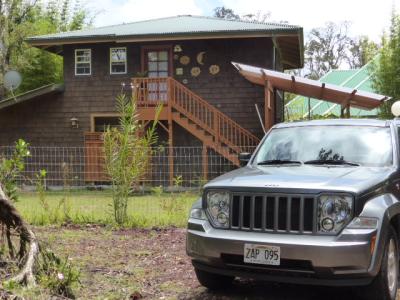 Das Bamboo View Cottage mit unserem kleinen, aber sehr durstigen Mietwagen.