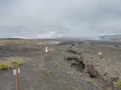 Es gibt immer wieder Theorien, dass die Amerikaner die Bilder der Mondlandung hier gedreht haben. Ganz so abwegig finden wir das nicht. Rechts die blaue Wolke ist wieder der Kilauea.