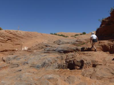 Gestern und heute haben wir uns für Wanderungen außerhalb der National Parks entschieden. Diese haben den großen Vorteil, dass man meist auf keinen Menschen trifft und die tolle Landschaft in Ruhe genießen kann. Allerdings ist heute Freitag, d.h. es werden etliche Adrenalin-Junkies fürs Wochenende kommen. Je nach Alter und Geldbeutel bringen diese Besucher Mountain-Bikes oder Offroad-Jeeps mit und verteilen sich auf die verschiedenen Strecken im Umland. Und wem dieses Adrenalin noch nicht ausreicht, der gibt sich den Corona Arch Swing (siehe Youtube).