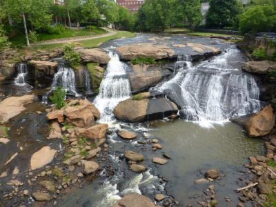 Der Wasserfall in Greenville. Der ist zwar nicht besonders groß, aber ein Wasserfall mitten in der Innenstadt ist doch eher ungewöhnlich.