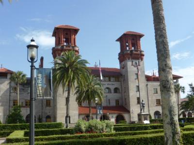 Dieses Gebäude steht im Historic District von St. Augustine. St. Augustine war die 1. feste Siedlung in der Neuen Welt, gegründet durch die Spanier. Dieses Jahr wird hier 450. Jahrestag gefeiert. Als Europäer kann man darüber nur müde lächeln. Allerdings sieht es in dieser Altstadt tatsächlich wie in Südspanien aus.