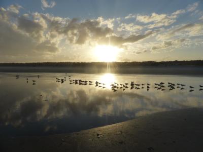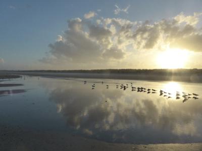 Auch wenn uns wieder eine Einheimische erzählt hat, dass es hier im Dezember normal nie so warm ist, haben wir die warmen Temperaturen in den letzten Tagen sehr genossen. Bei angenehmen 28 Grad am Tag und 20 Grad nachts haben wir es ruhig angehen lassen. In der Stadt ist über die Feiertage einiges los und am Strand volles Strandleben mit Surfen, Sandburgen bauen und sich selbst grillen. Seit einigen Tagen ist allerdings die lila Flagge gehisst: Dangerous Marine Life. Wir vermuten einen Zusammenhang mit dem Weissen Hai, der Anfang der Woche in der Nähe gefilmt und abends in den Lokalnachrichten präsentiert wurde. Die Surfer hat das allerdings nicht abgeschreckt.